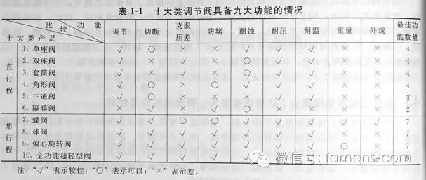 48十大類調(diào)節(jié)閥中每一種閥具備九大功能的情況如何?