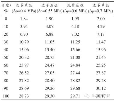 表1 不同開度和不同壓差下數(shù)值模擬的流量系數(shù)值