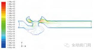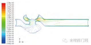 圖2 調(diào)節(jié)閥10%開度時(shí)流道剖面
